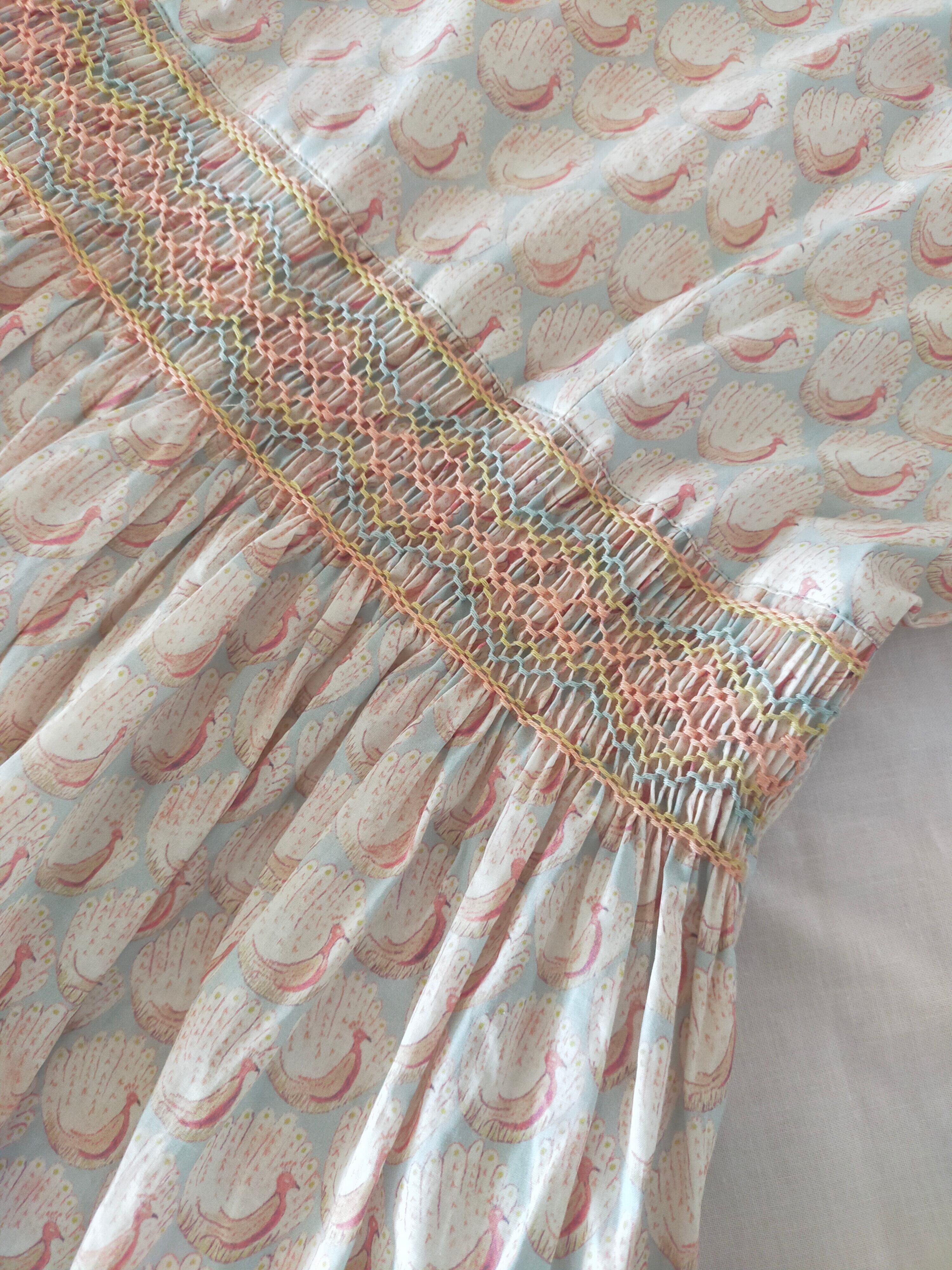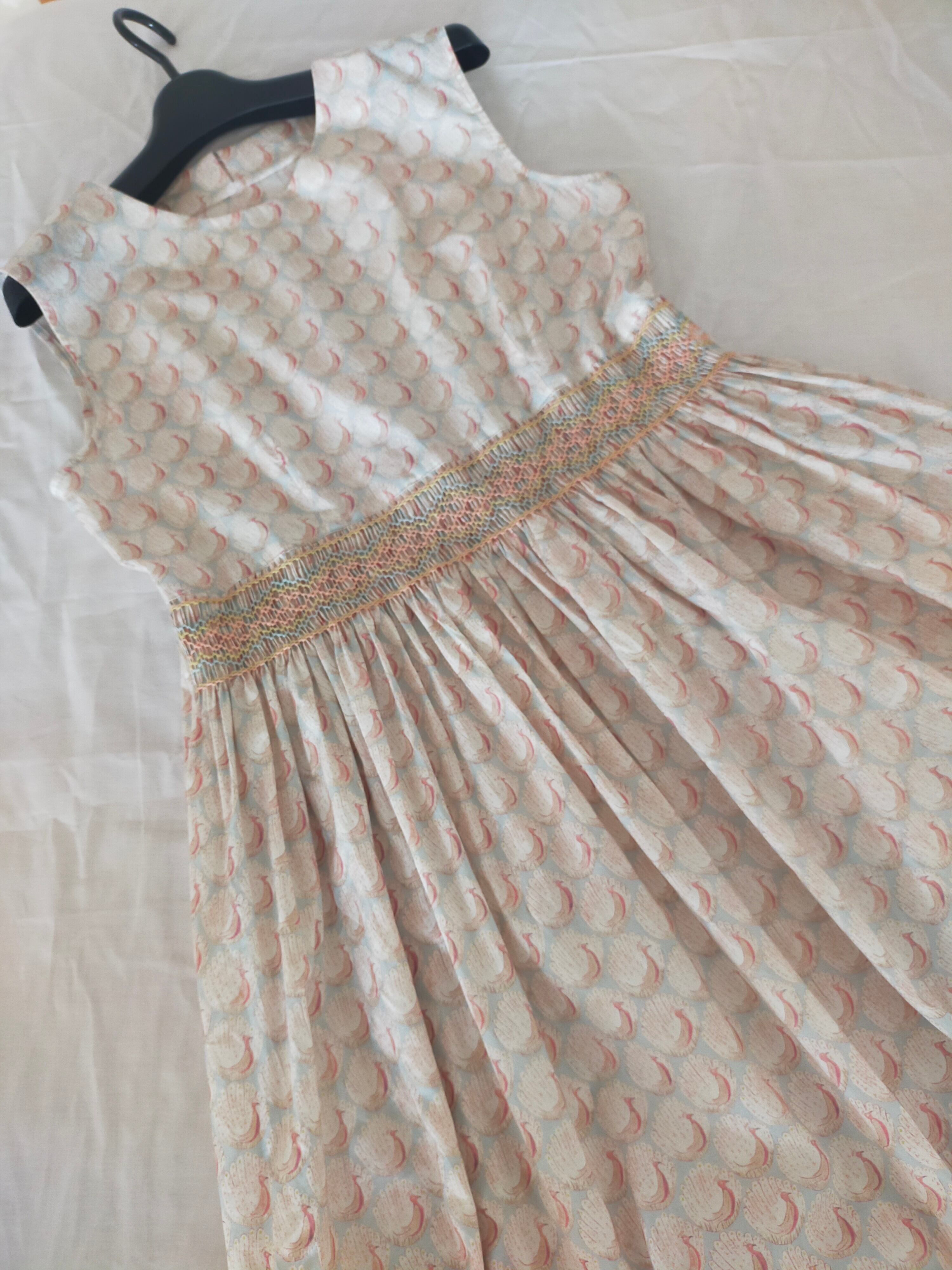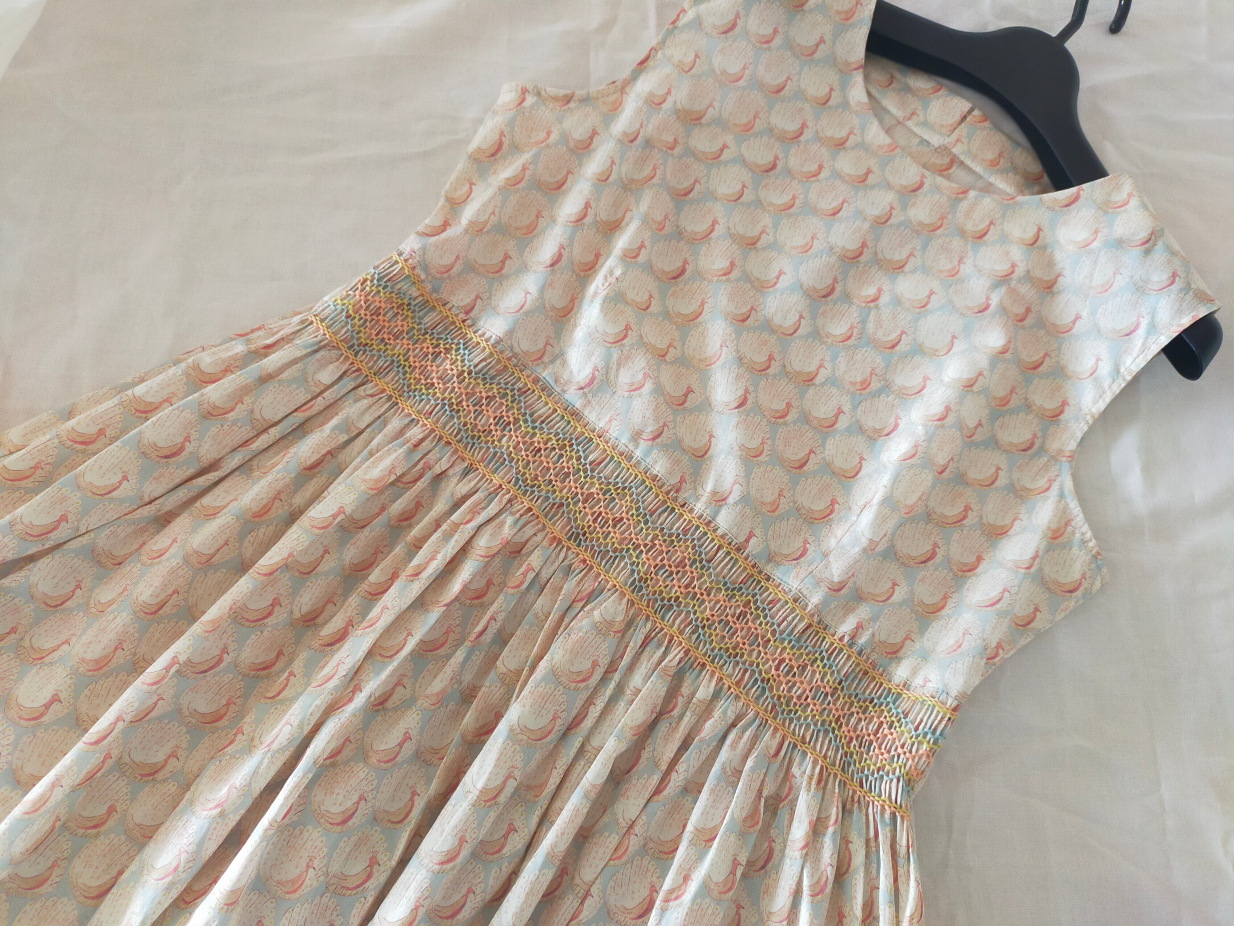 《大人のスモッキング刺繍ワンピース》リバティ生地 ノースリーブワンピース