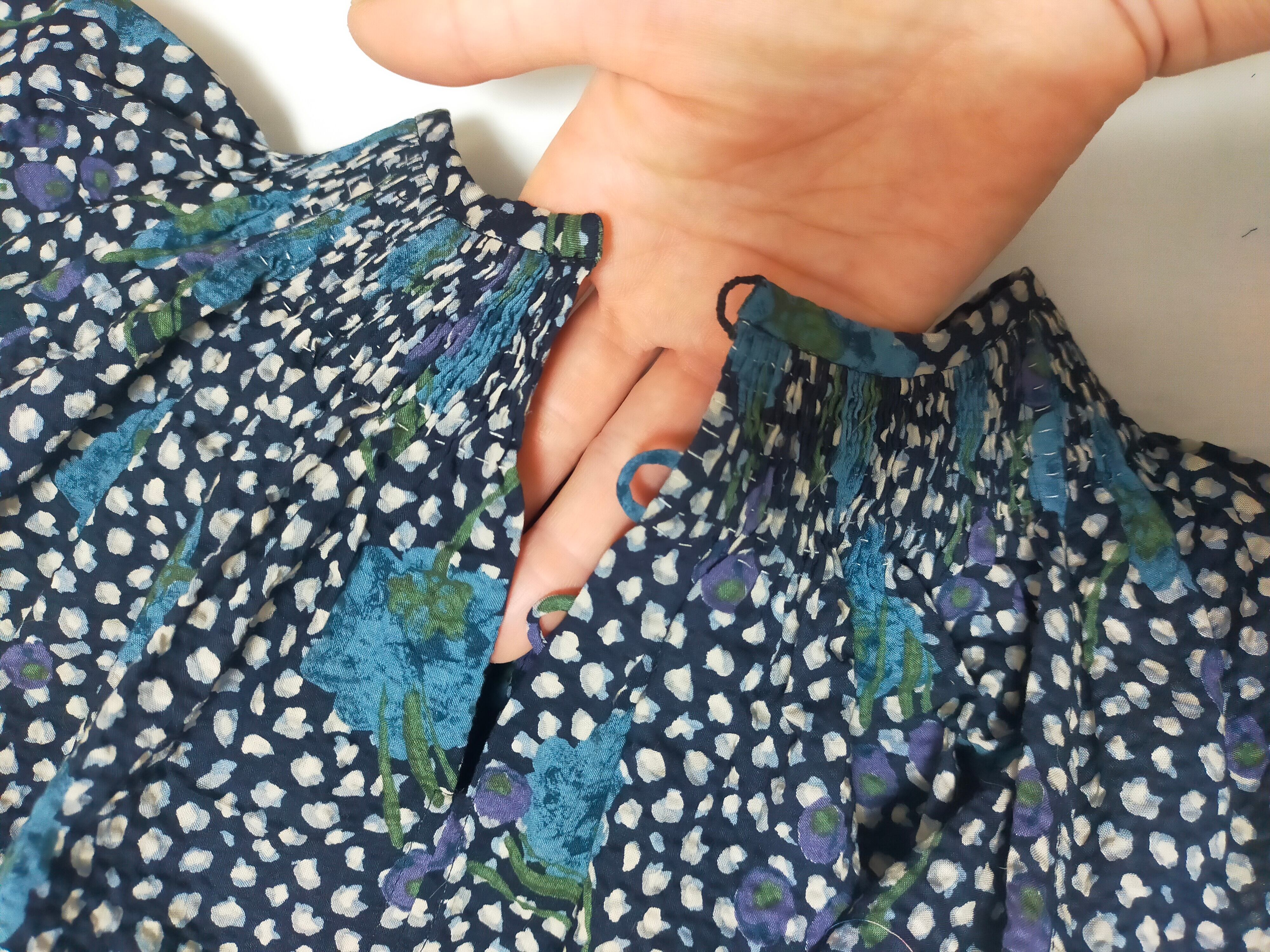 今回どうしても部分的に生地が足りず前身頃の脇あたりに接ぎを入れています