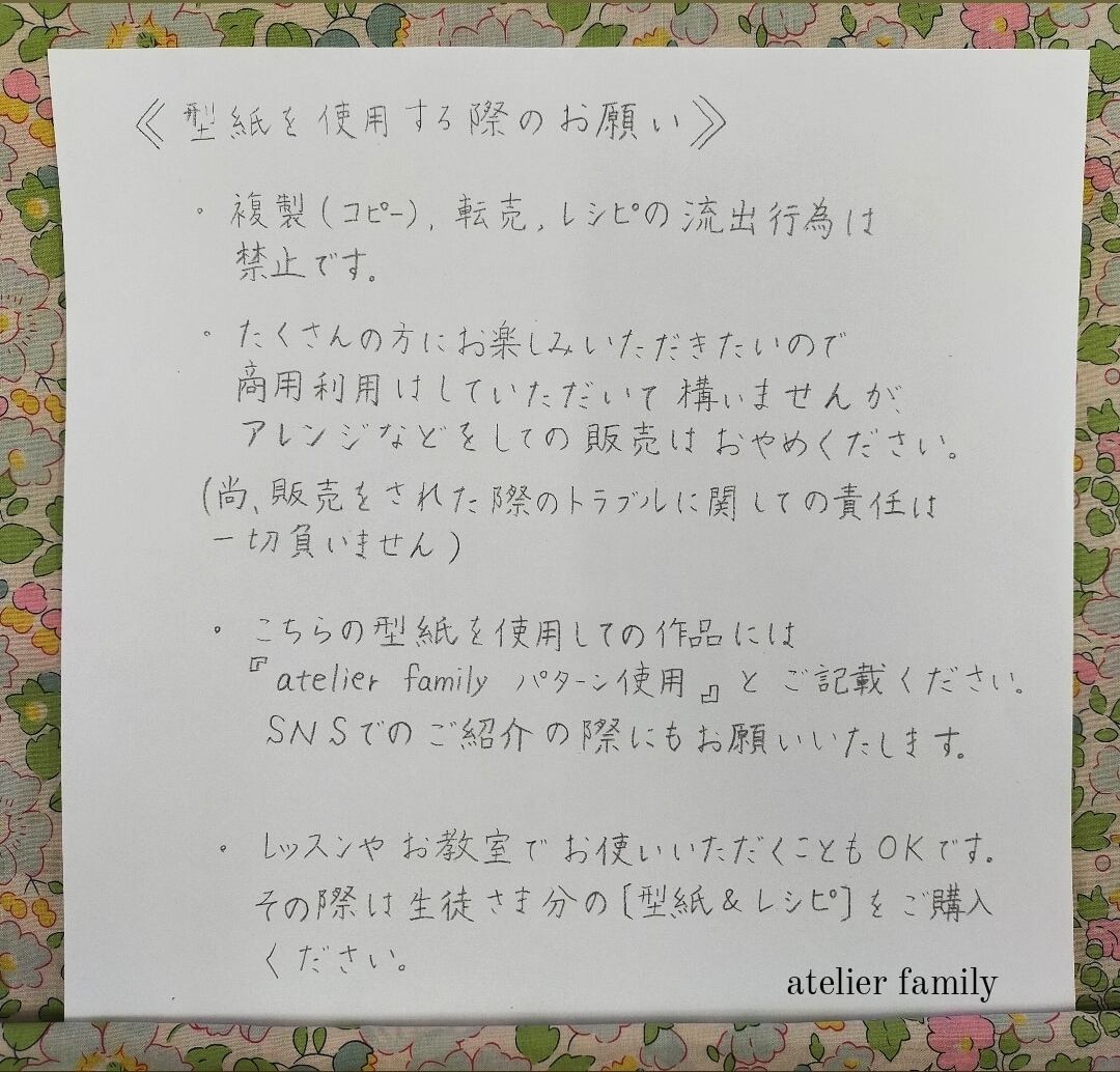 ※型紙を使用していただく際のお願いを画像⑥でご確認いただき、ご購入を検討していただけましたら幸いです。
