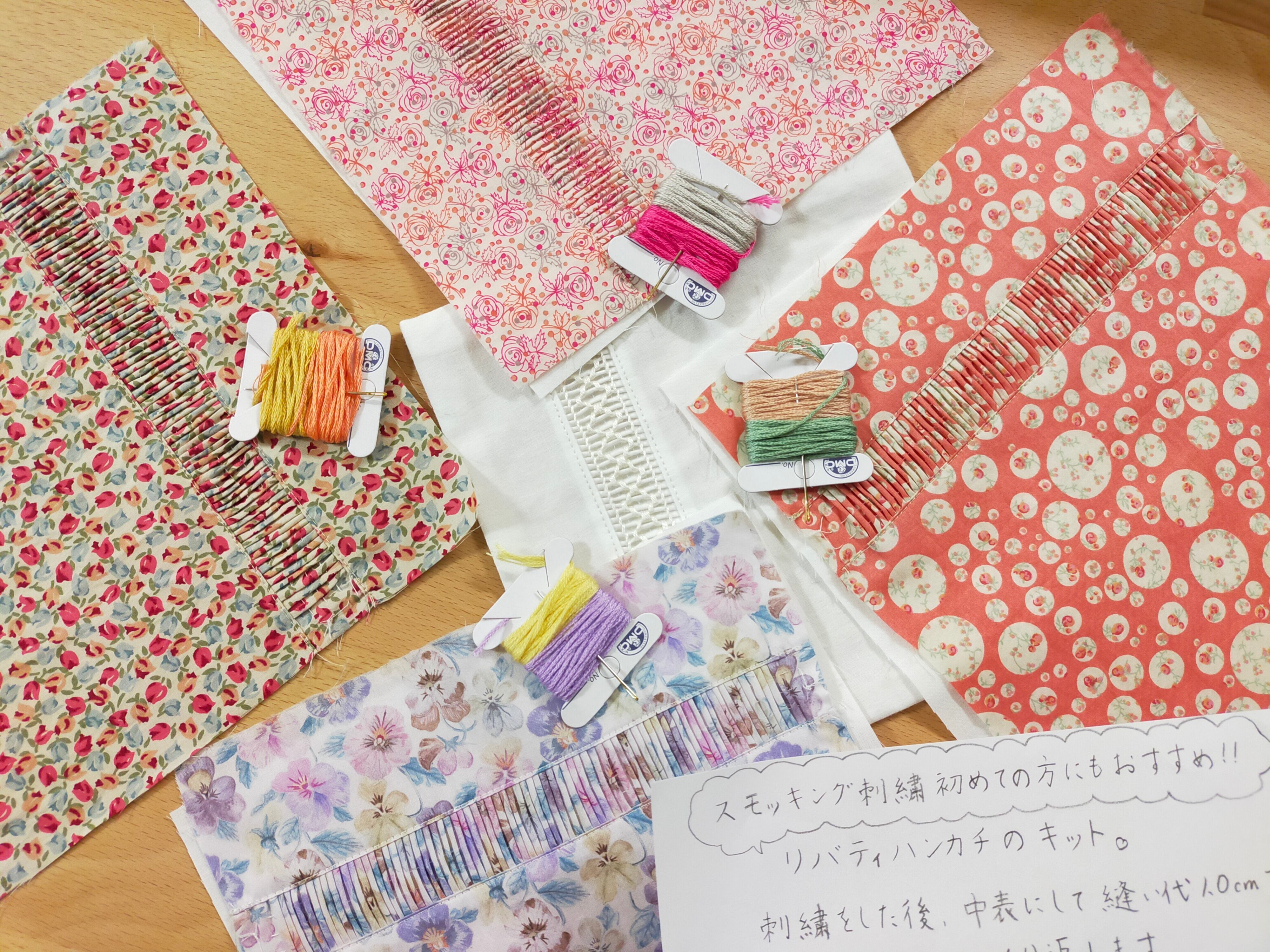 《キット》リバティプリントで作るスモッキング刺繍のハンカチキット