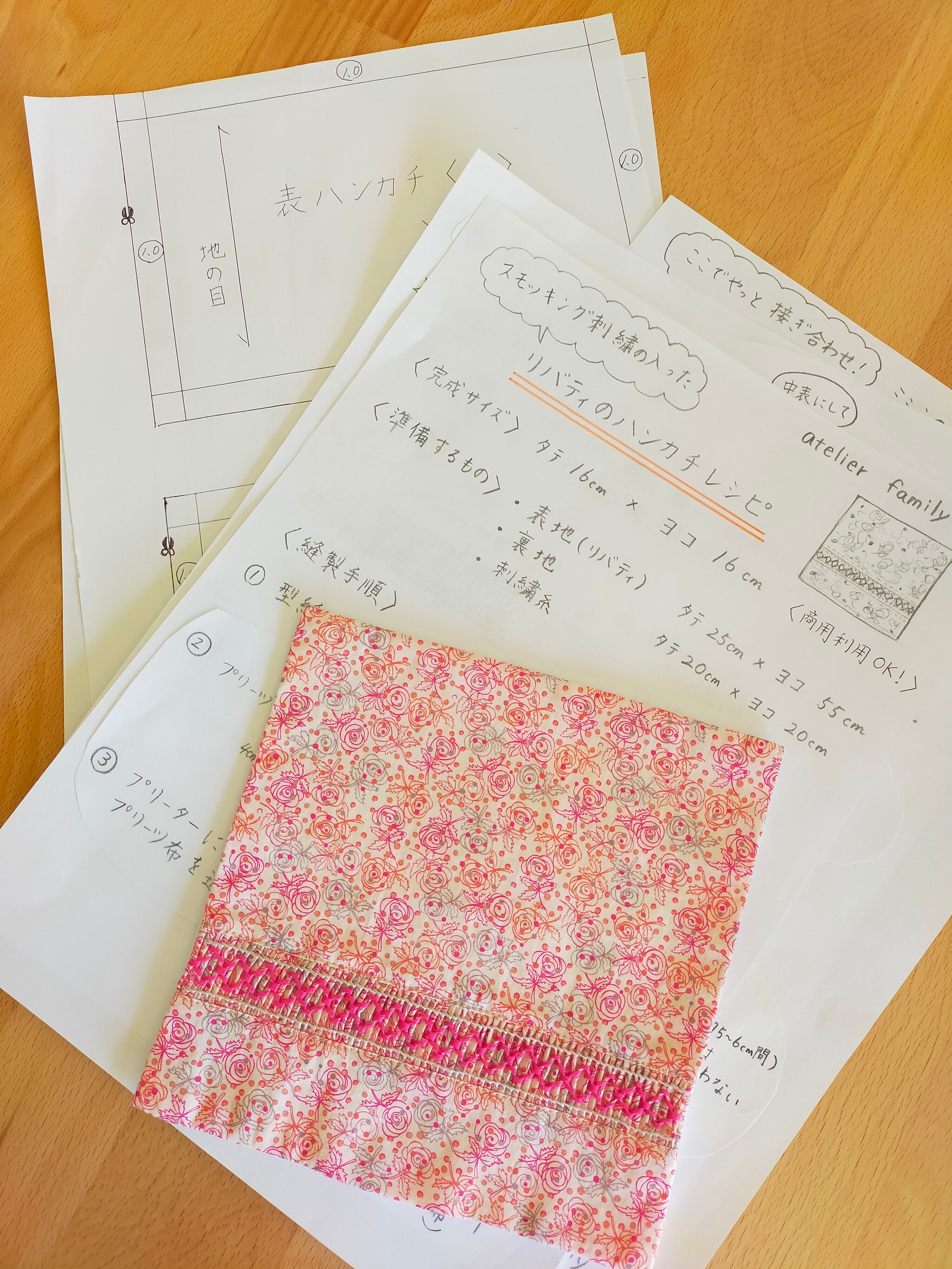 A4のサイズのレシピが3枚と型紙が2枚です。