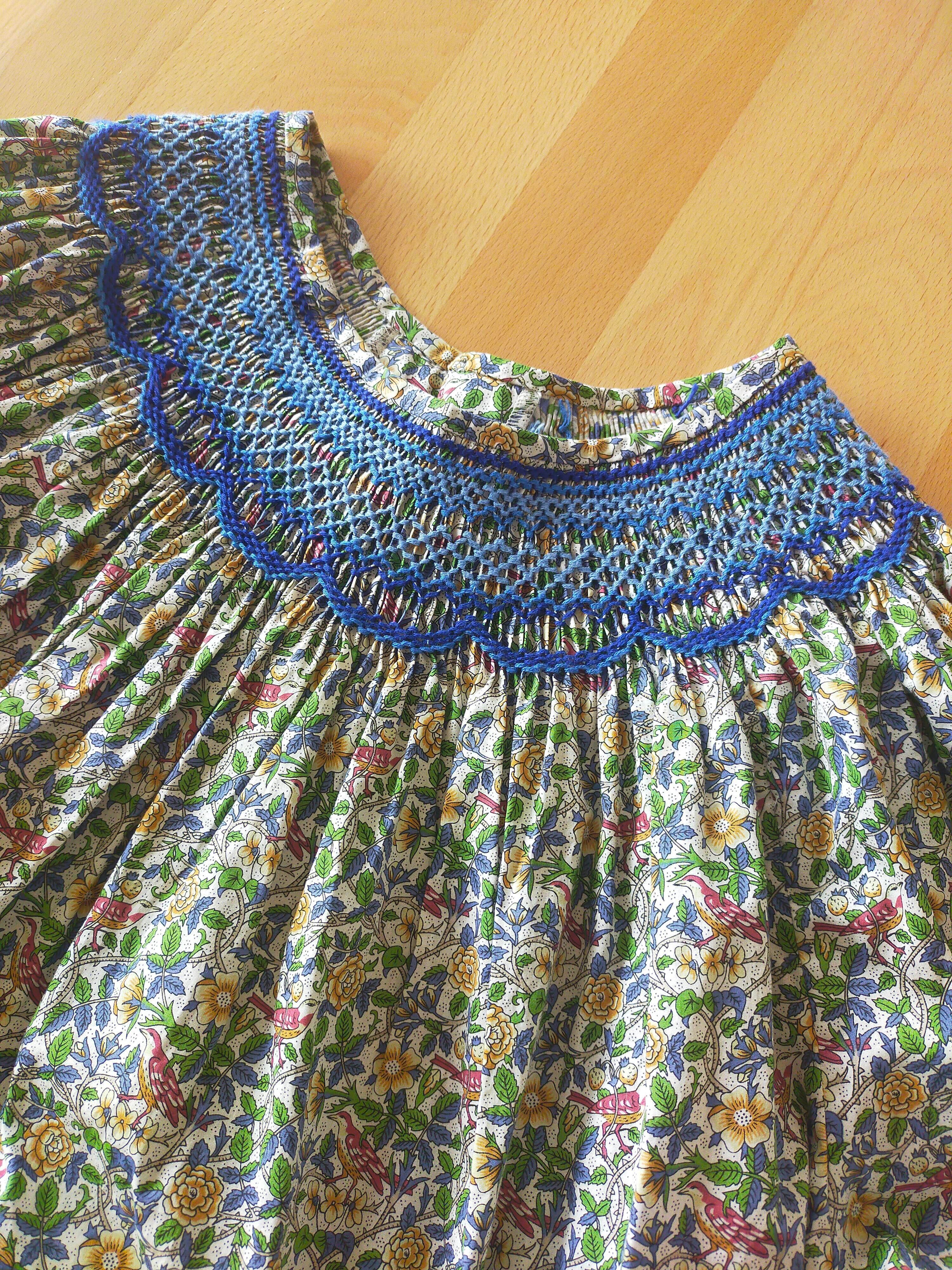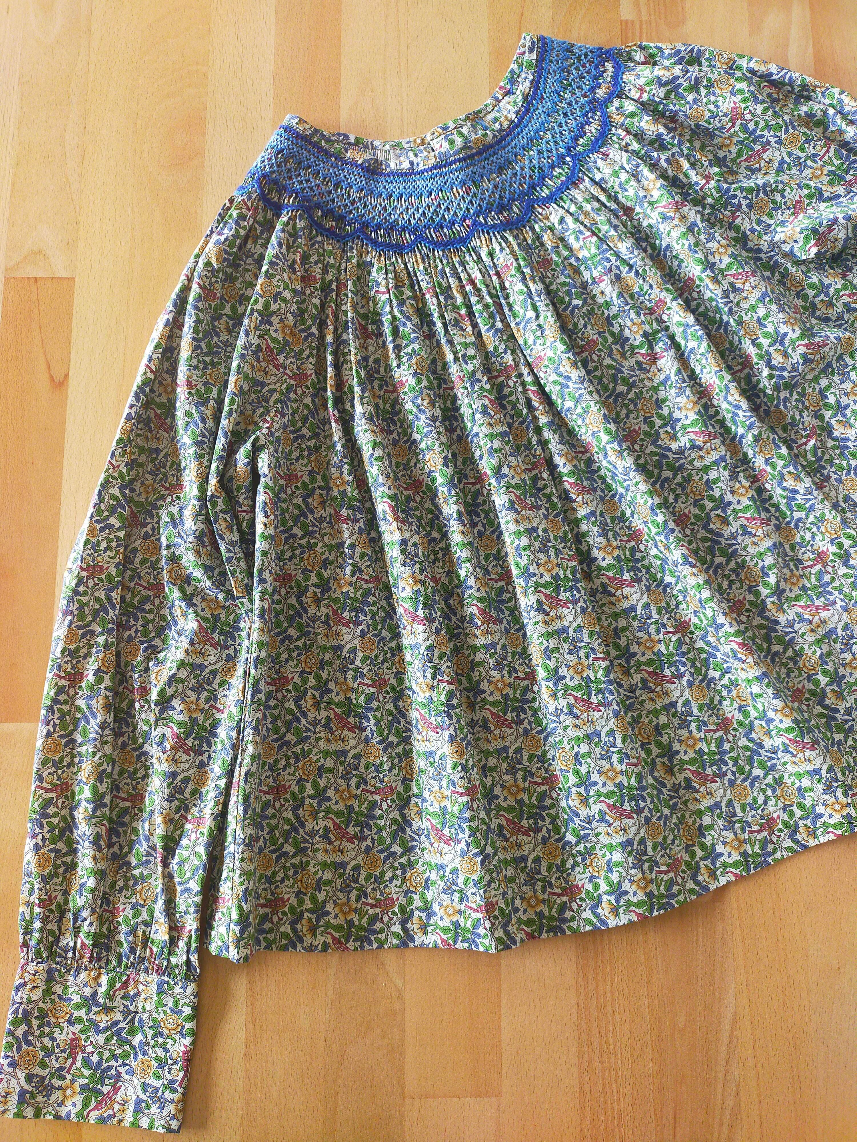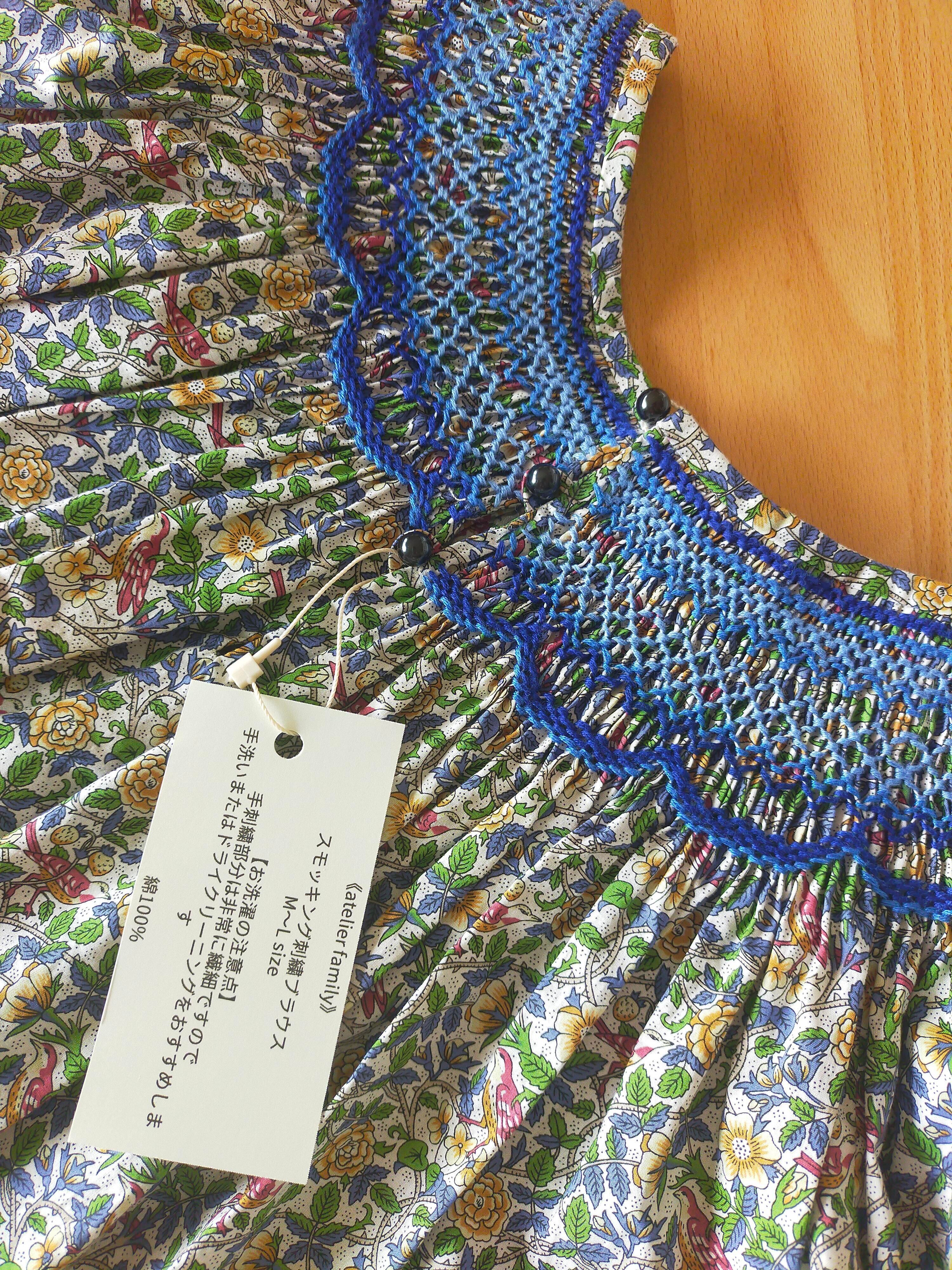 大人のスモッキング刺繍ブラウス リバティプリント使用