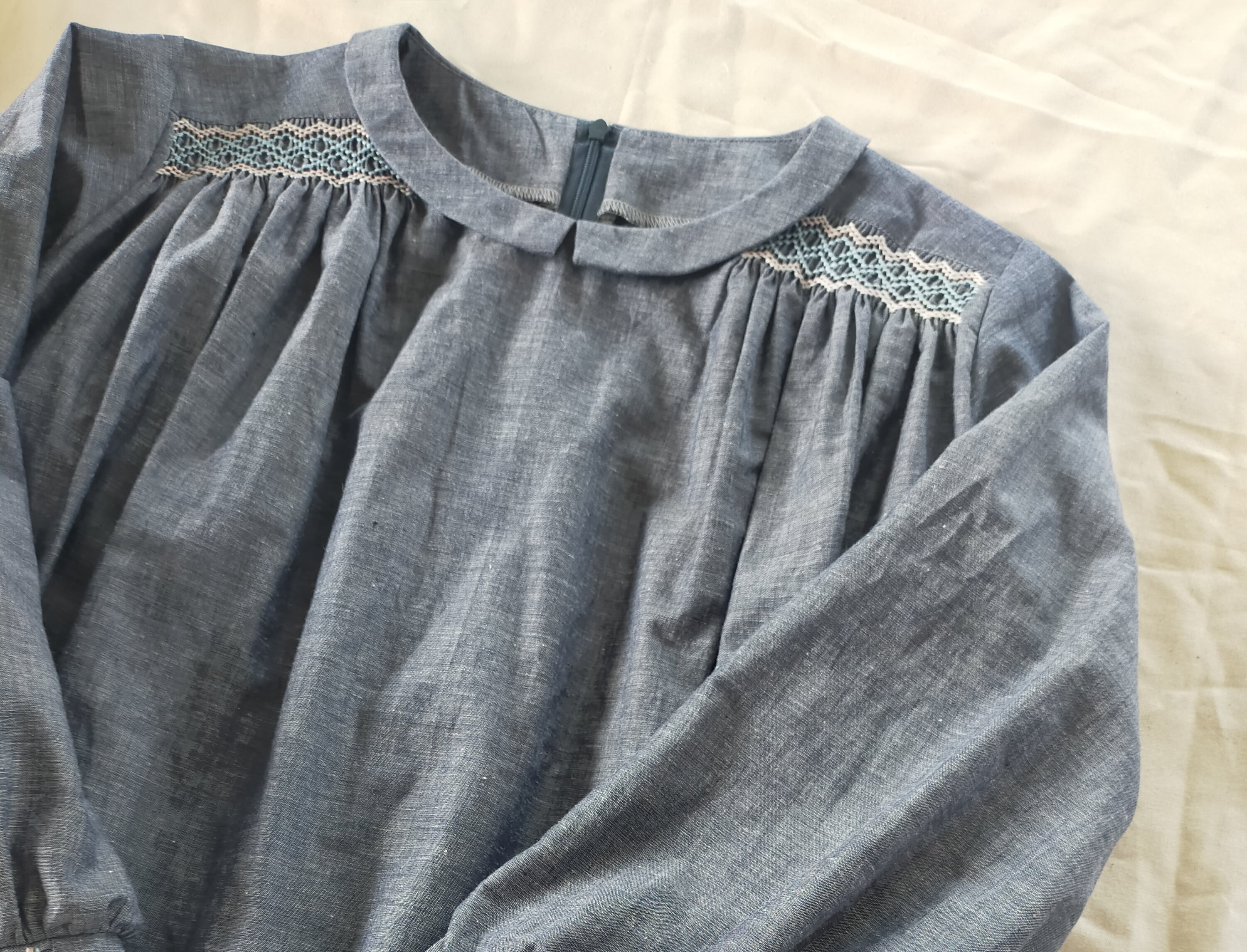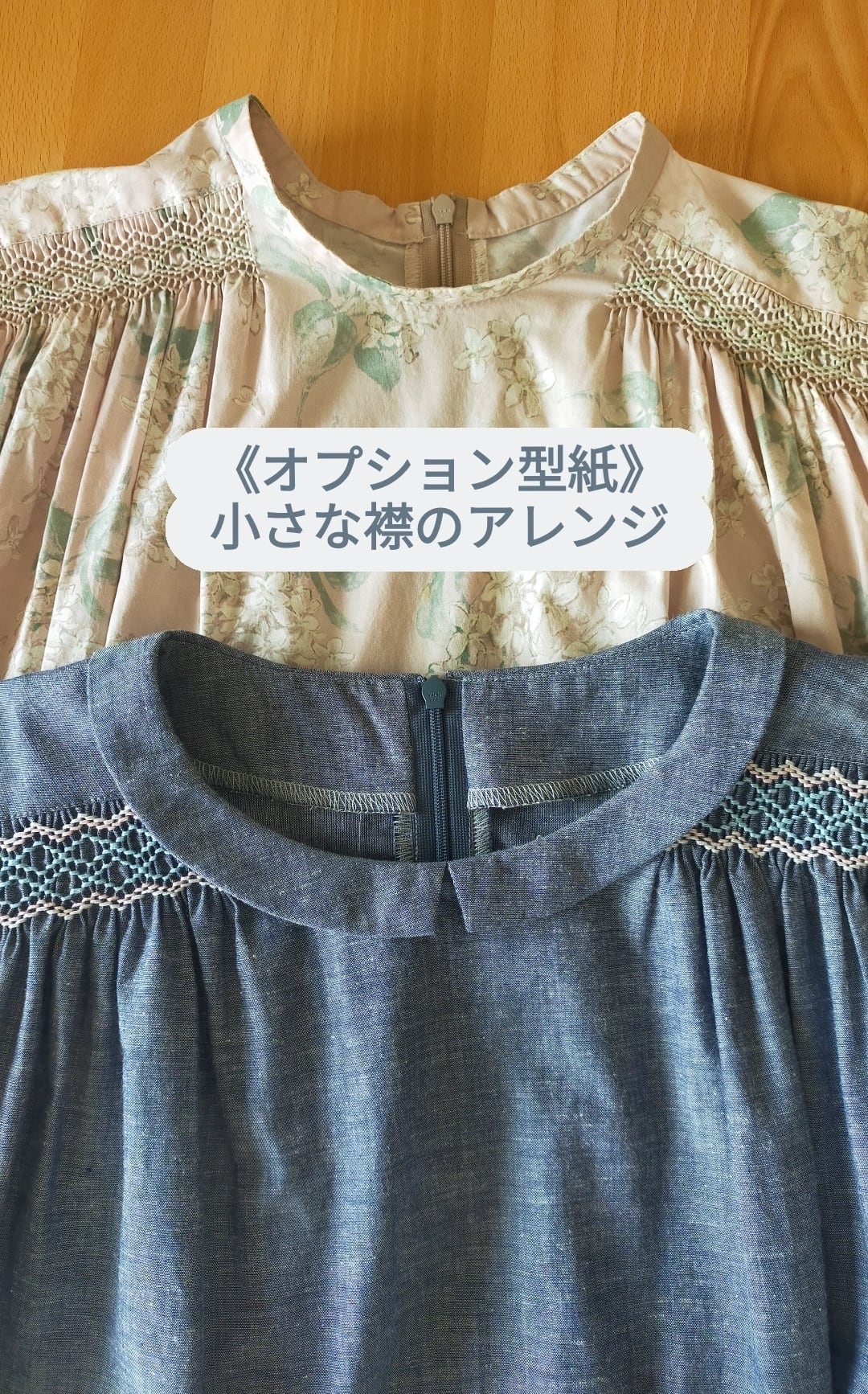 《型紙&レシピ》肩ヨーク スモッキング刺繍のブラウス (スタンドカラー)